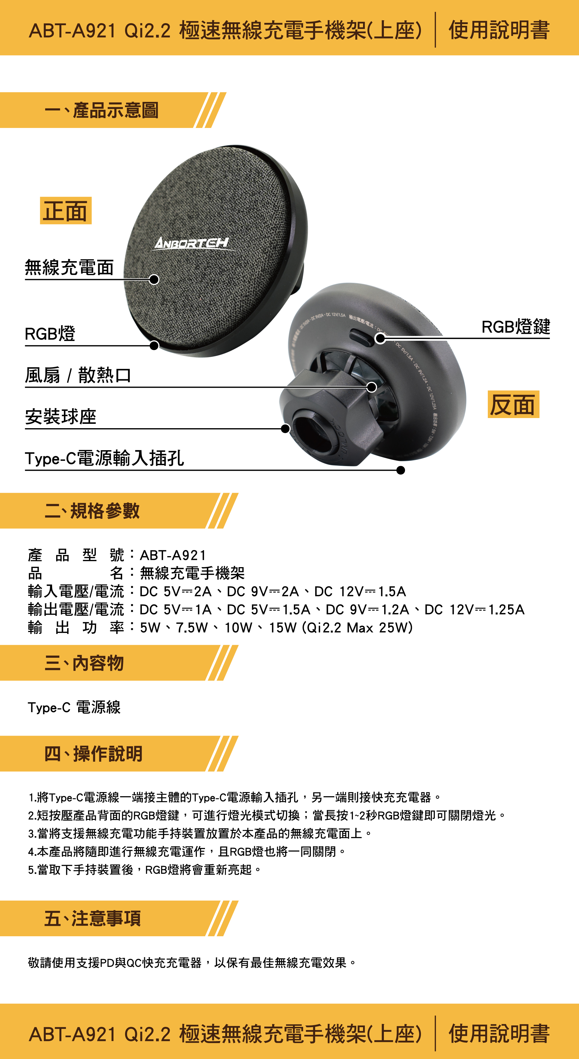 【安伯特】Qi2.2 極速無線充電手機架(上座)-說明書