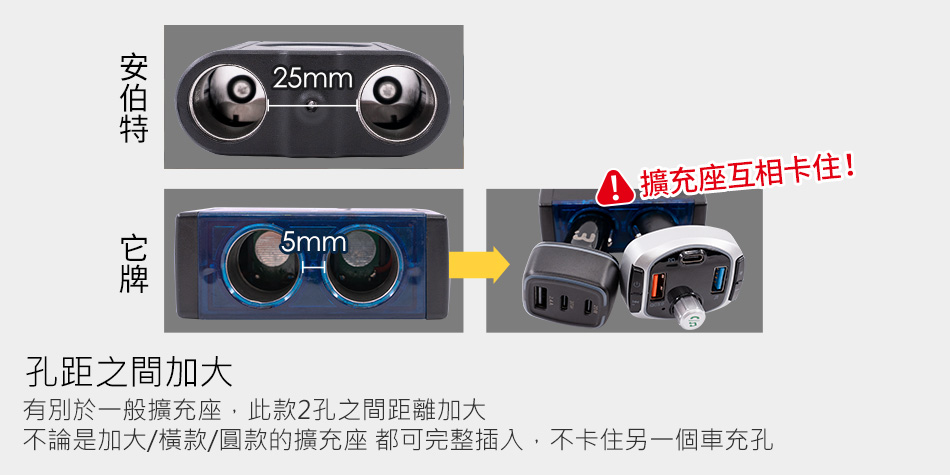 車充孔之間的大間距