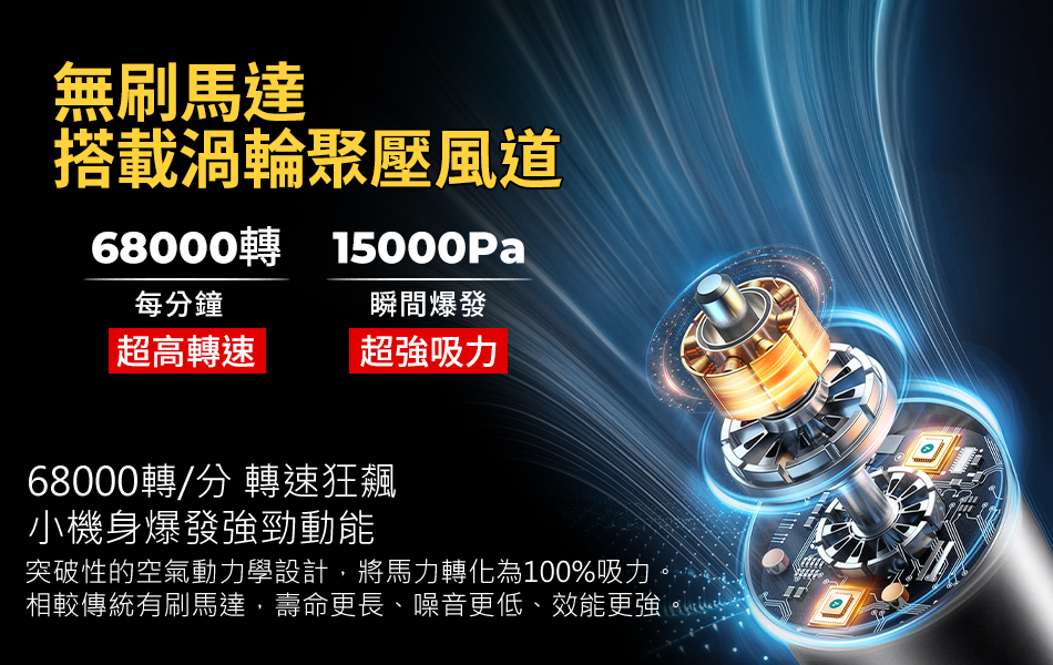 無刷馬達 搭載渦輪聚壓風道