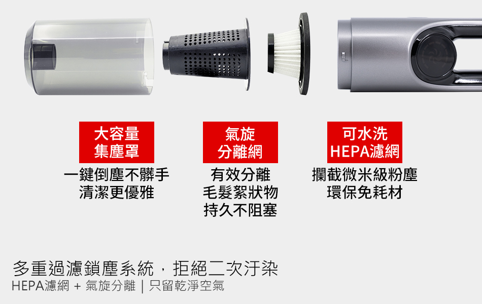 HEPA濾網+氣旋分離,只留乾淨空氣