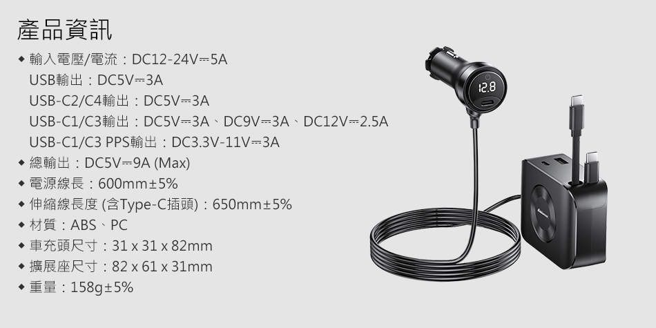 伸縮線長度 (含Type-C插頭):650mm±5%