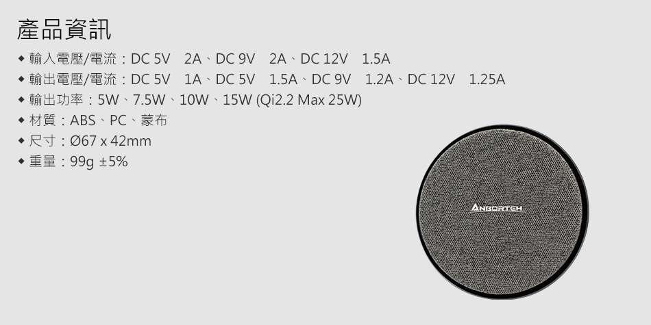 輸出功率:5W、7.5W、10W、15W (Qi2.2 Max 25W)