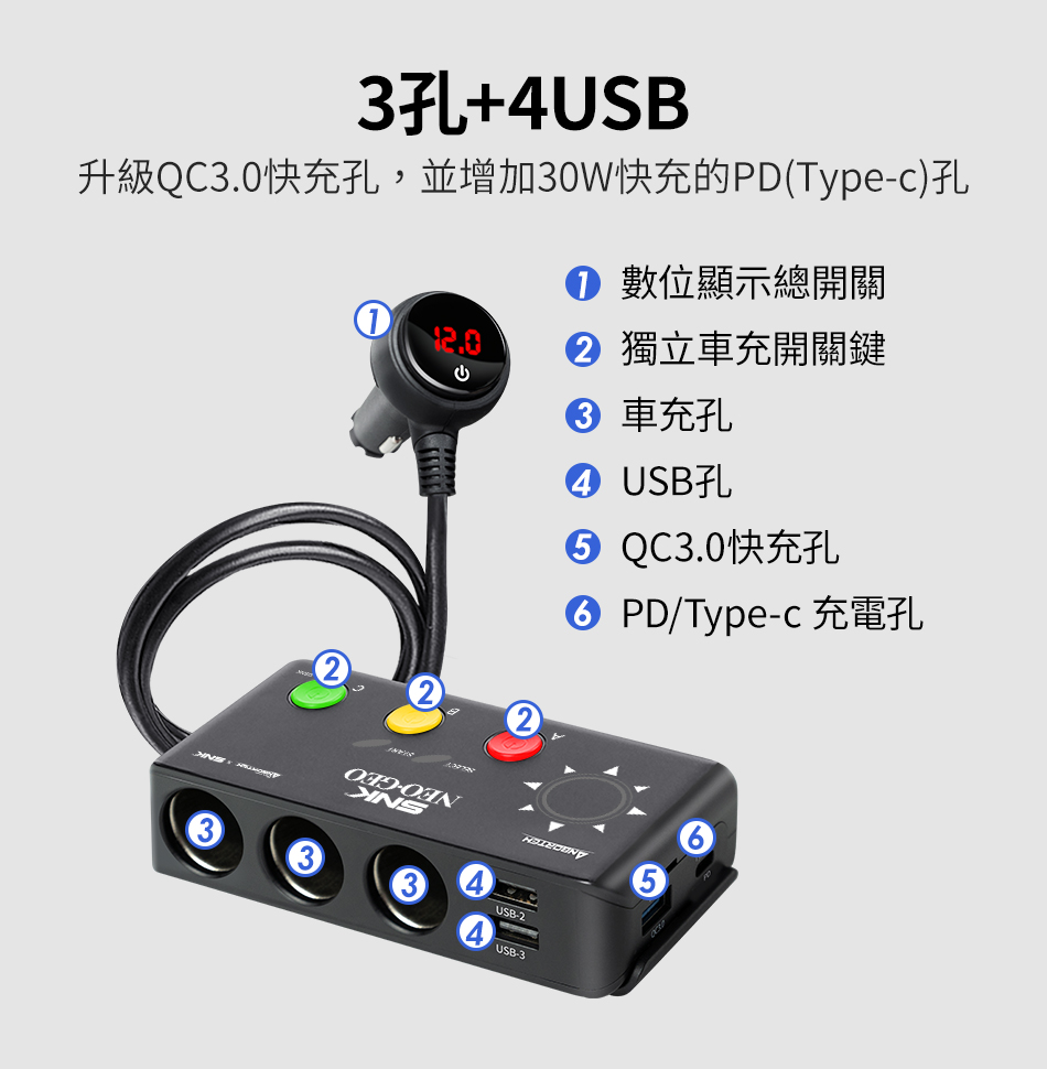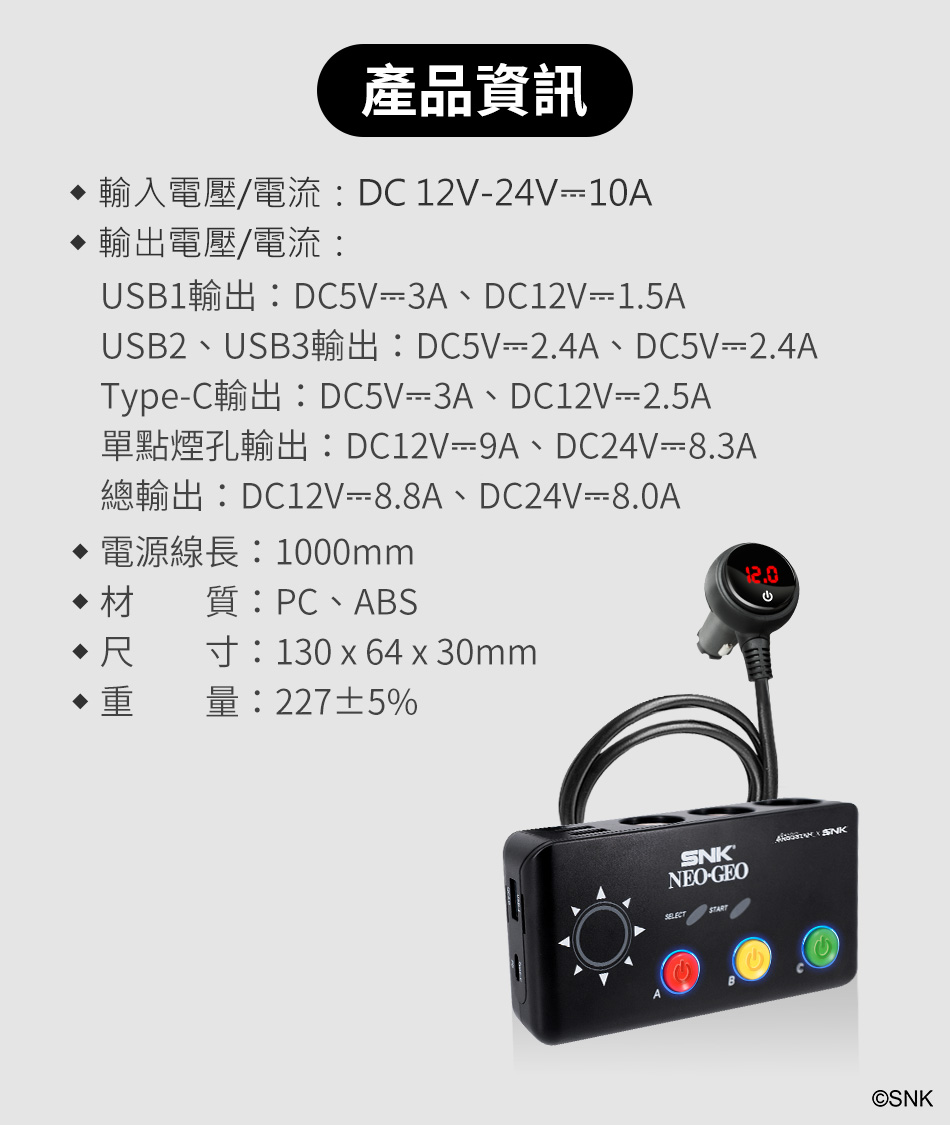 KOF97聯名-智能七孔車充 NEOGEO手把